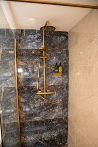 Walk-in shower. Electric underfloor heating (instructions by door). High-quality environmentally-friendly shampoo/conditioner and bodywash provided.