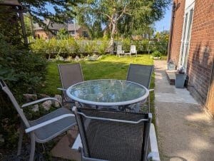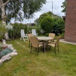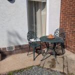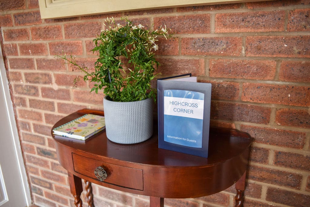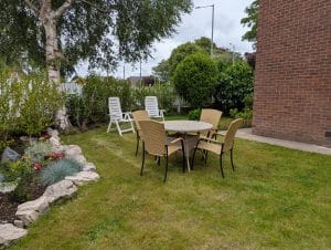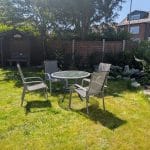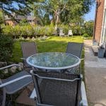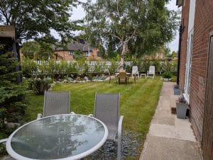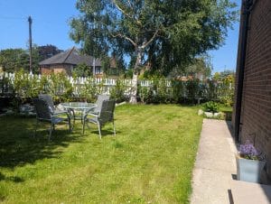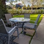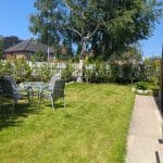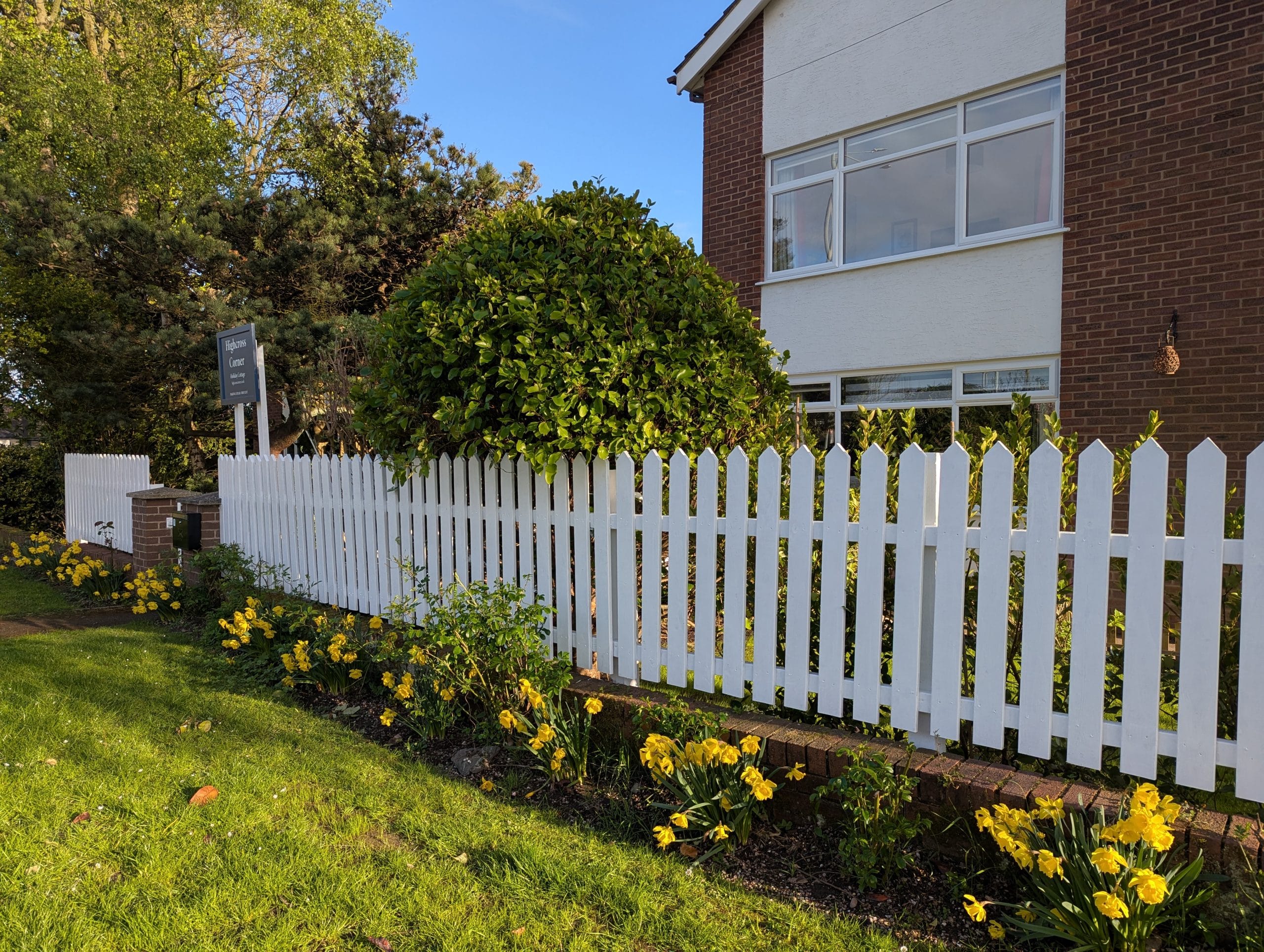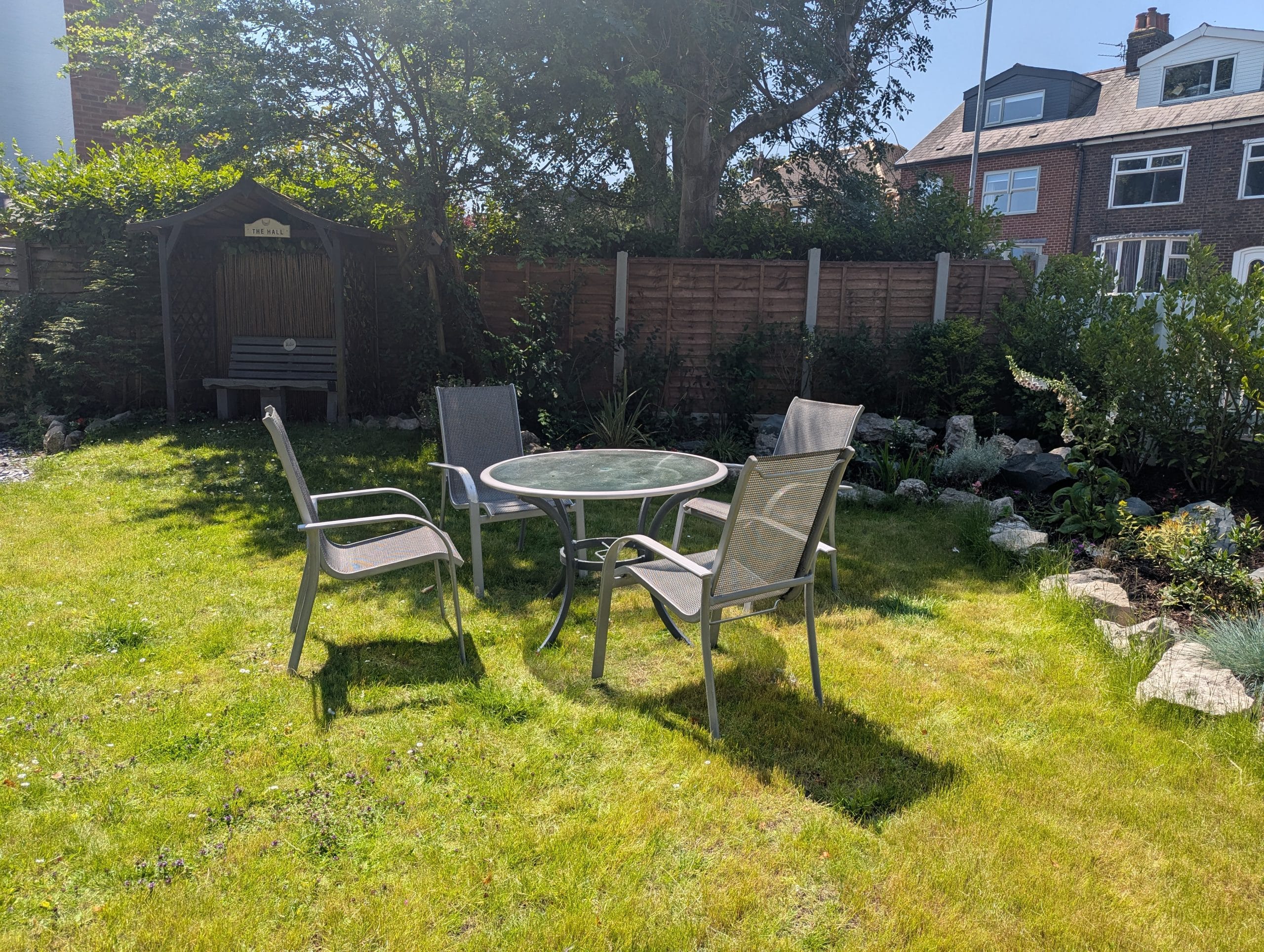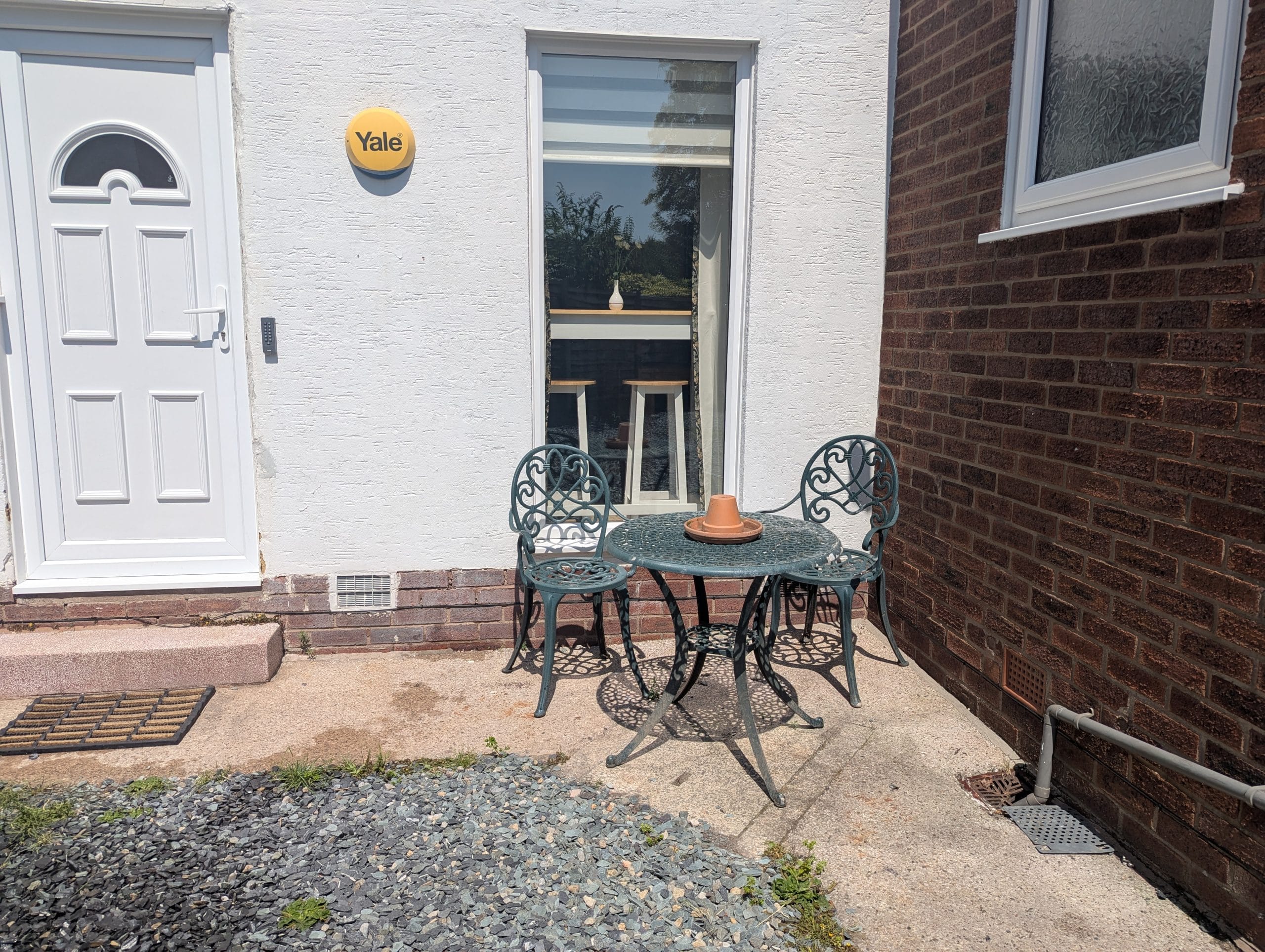 The main part of the garden is securely enclosed by a picket fence and is dog-proof. There are bird feeders and we are lucky to have some lovely garden birds. The garden is grass with a border. Feel free to move the table and chairs to the sunniest spot. Highcross Corner fronts a road, but it really is not too noisy and the garden feels pleasant and peaceful. The privacy is not yet as good as it will when the new hedge has had a few more years growth.